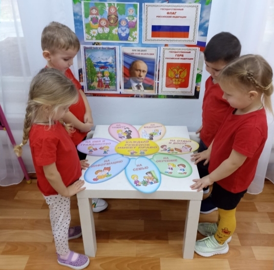 В День прав человека традиционно в каждой группе «распускаются» лепестки цветика-семицветика. И дошколята снова и снова повторяют свои основные права, узнают о своих обязанностях.