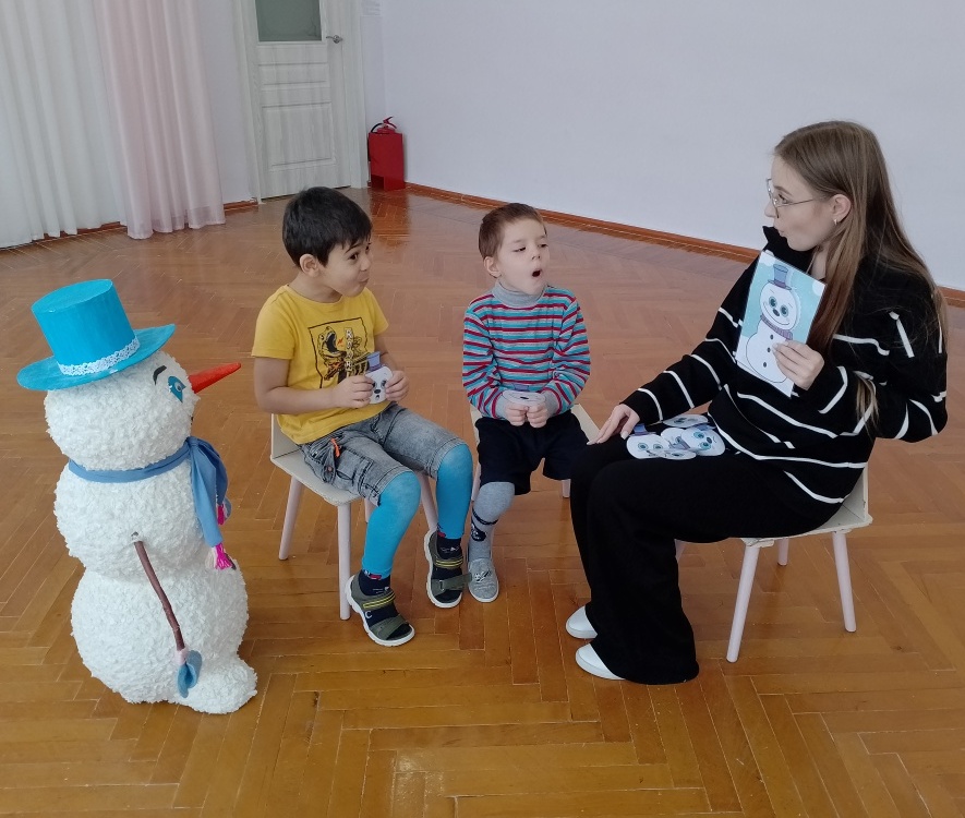 Сегодня учитель-логопед и сказочный снеговик пригласили ребят в зимнюю сказку. Весёлая логоритмика объединила всех и позволила не только поиграть, но и выполнить различные задания: