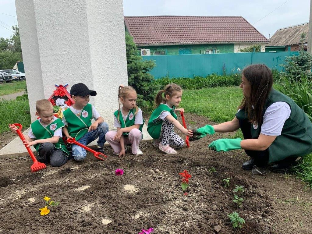 Команда «Я – волонтёр» продолжает участие в районной экологической акции «Цветники Победы», посвящённой 80-летию Великой Победы.
